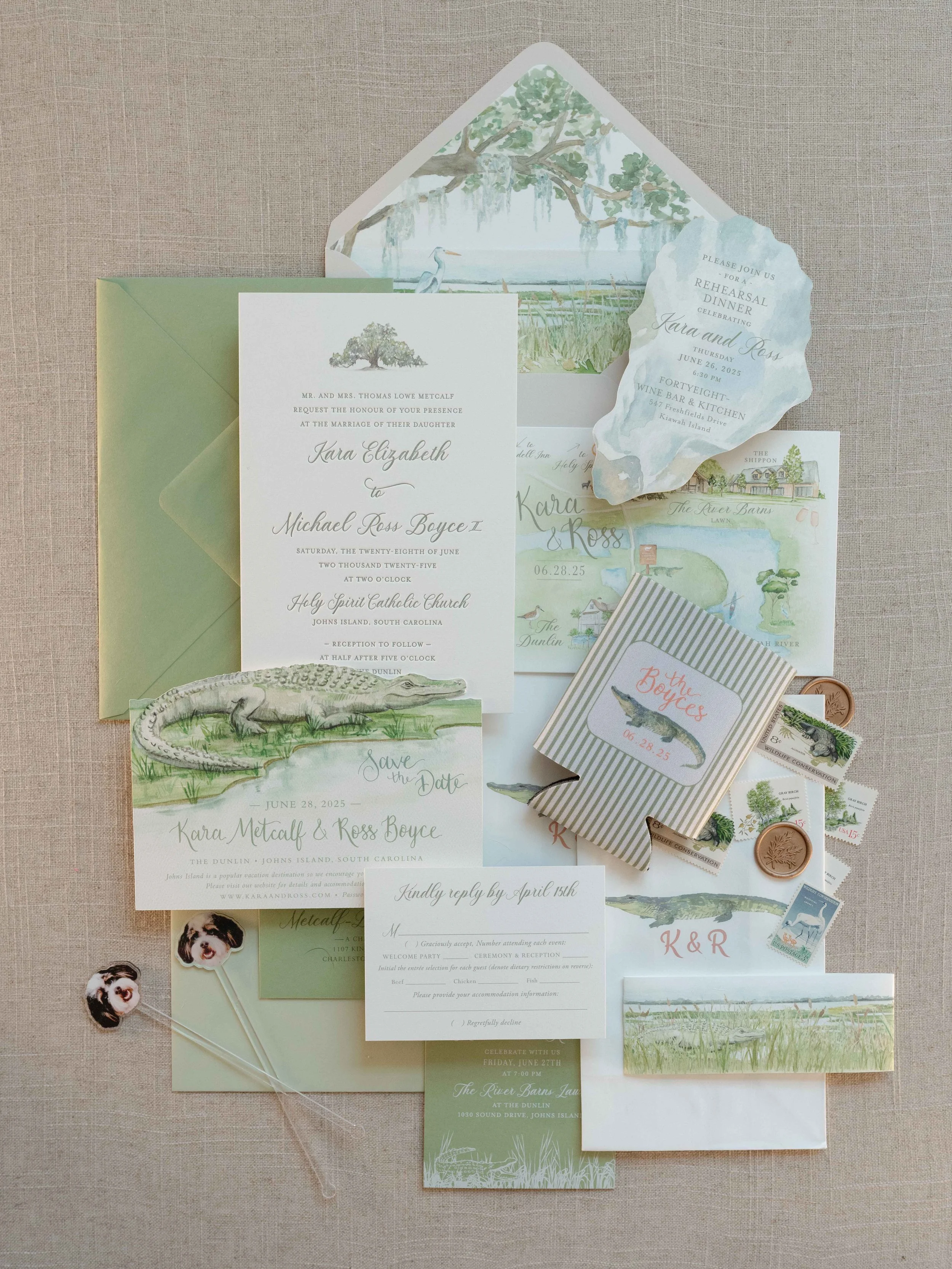 Venue, Catering, and Bar: The Dunlin | Photography: Justin Leon Brown | Videography: Palmetto Films | Floral: Bearded Florist | Ceremony Musicians: Palmetto Strings | Entertainment: A-Town A-List, Darby Events, Elevate NC | Rentals: Snyder Events, Curated Events, Charleston Wraps, Showtime Party Rentals | Linens: Stradley Davidson, Reverie Social, Party Tables | Beauty: Brianna Adams and Cheryl Quinn | Transportation: Coastal Limo | Bridal Assistant: Cacky’s Bridal Aid | Stationery: Studio R Design